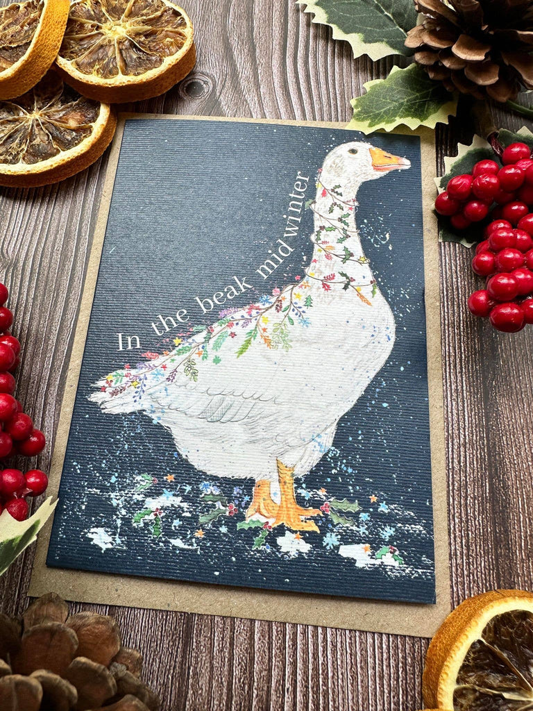 Goose Christmas Eco Friendly Art Card cute colourful funny