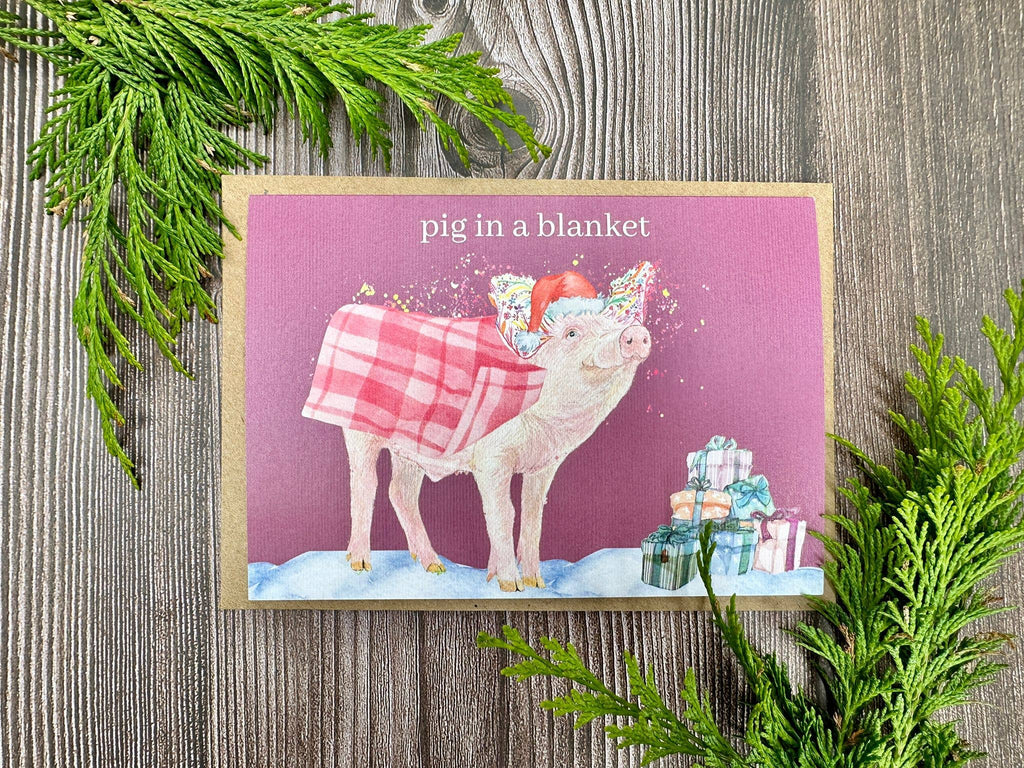 Christmas Pig | Eco Friendly Art Card Cute Colourful Funny