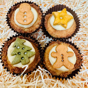 📦 Product Details: * Each box contains 4 pupcakes * At least 3 different flavours per box (chosen from 12 fun options) * Soft texture – easy to break apart for all dog sizes Flavours Include: Blueberry Cream, Eton Mess, Cookies & Cream, Swirl Sundae, ‘Mint’ Carob Chip, Carrot Cake, Cherry Bakewell, Peanut Butter Cup, Brownie Bite Sundae, Strawberries & Cream, ‘Lemon’ Meringue, and Bonfire Night ‘Smore Please’.