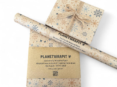 PlanetWrapIt - Christmas Snowflakes Recycled Eco Kraft Gift Wrapping Paper