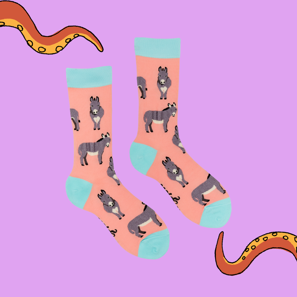 Introducing Fluffy Donkeys Socks, the perfect combination of cute and cosy. These socks are designed with fluffy material to keep your feet warm and donkey prints for a playful touch. Perfect for any animal lover, these socks are sure to bring a smile to your face.